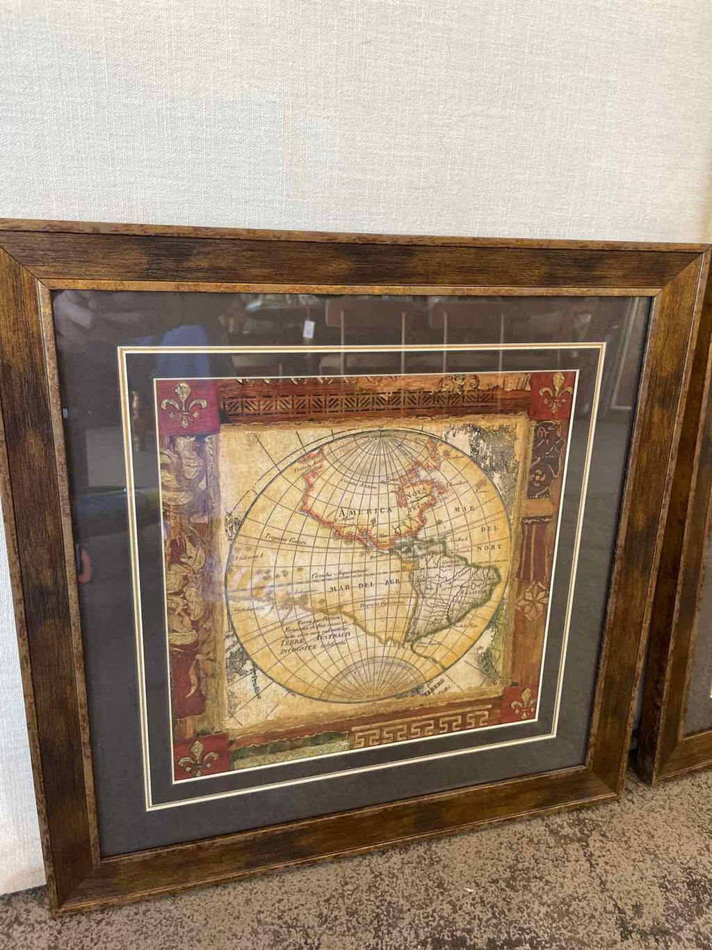 Set of 2 Bronze Framed Map Prints - 18.5" x 18.5"