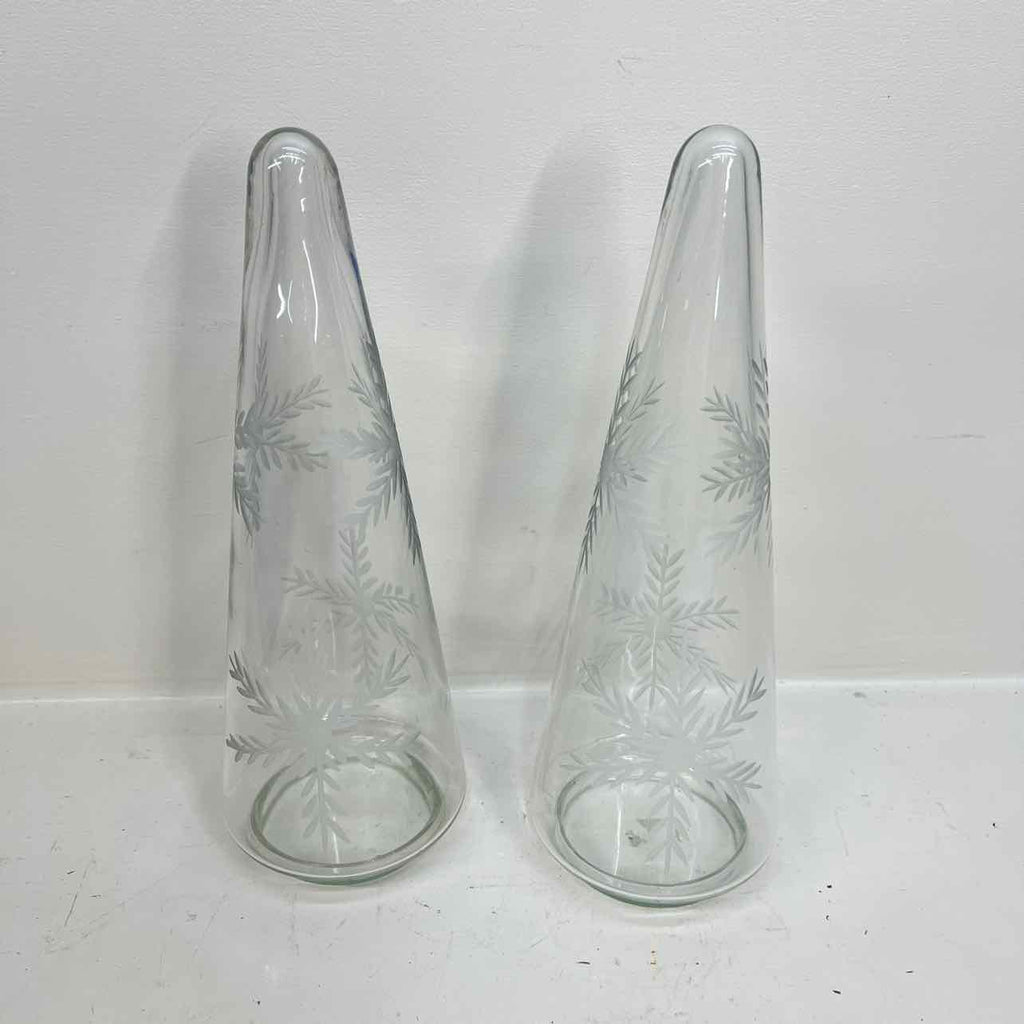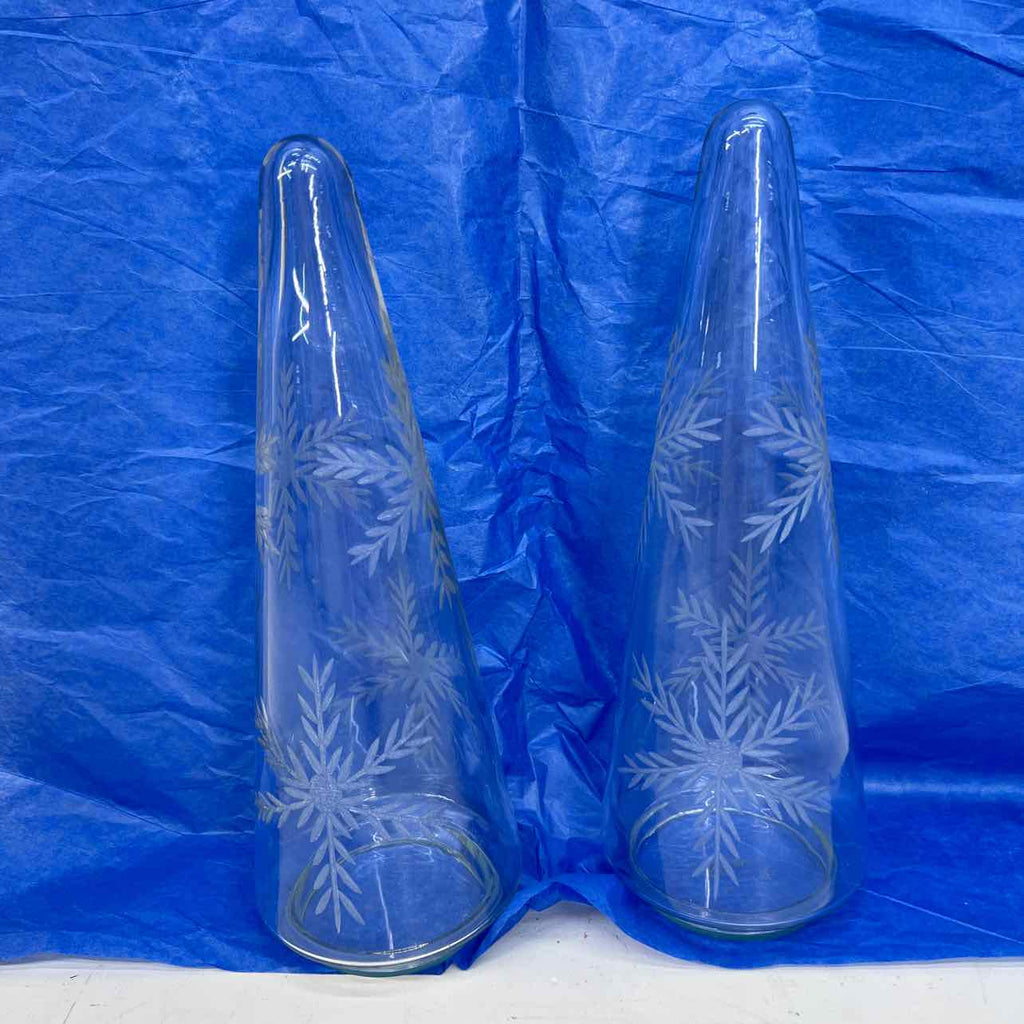 Set of 2 Glass Christmas Trees w/ Etched Snowflakes - 11" Tall