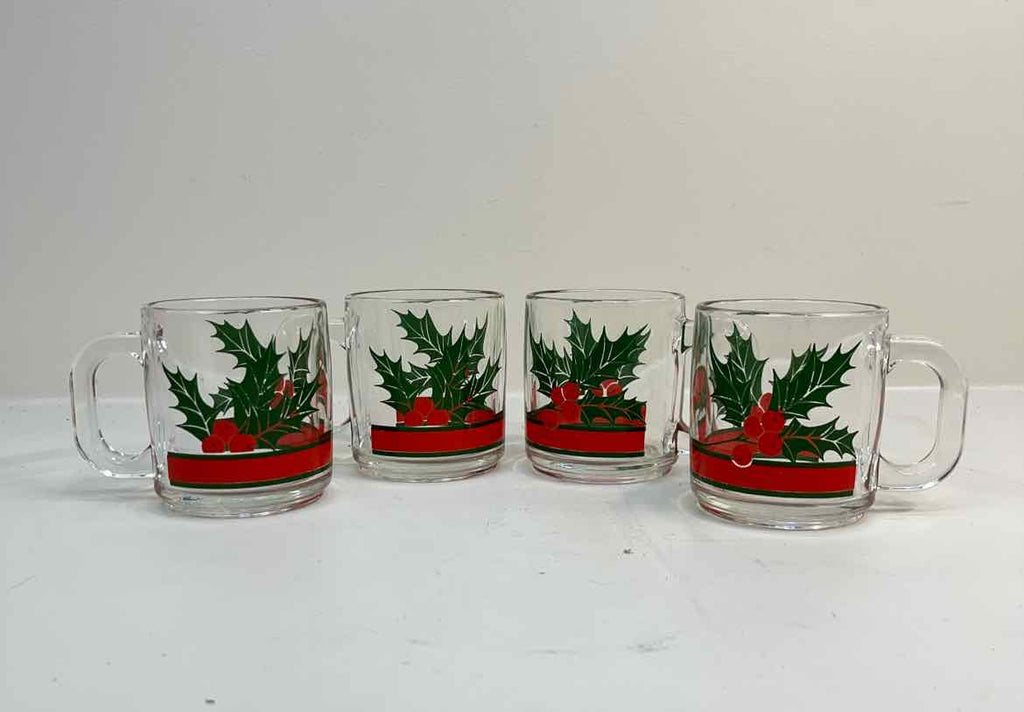 Set of 4 Libbey Christmas Holly Berry Mugs