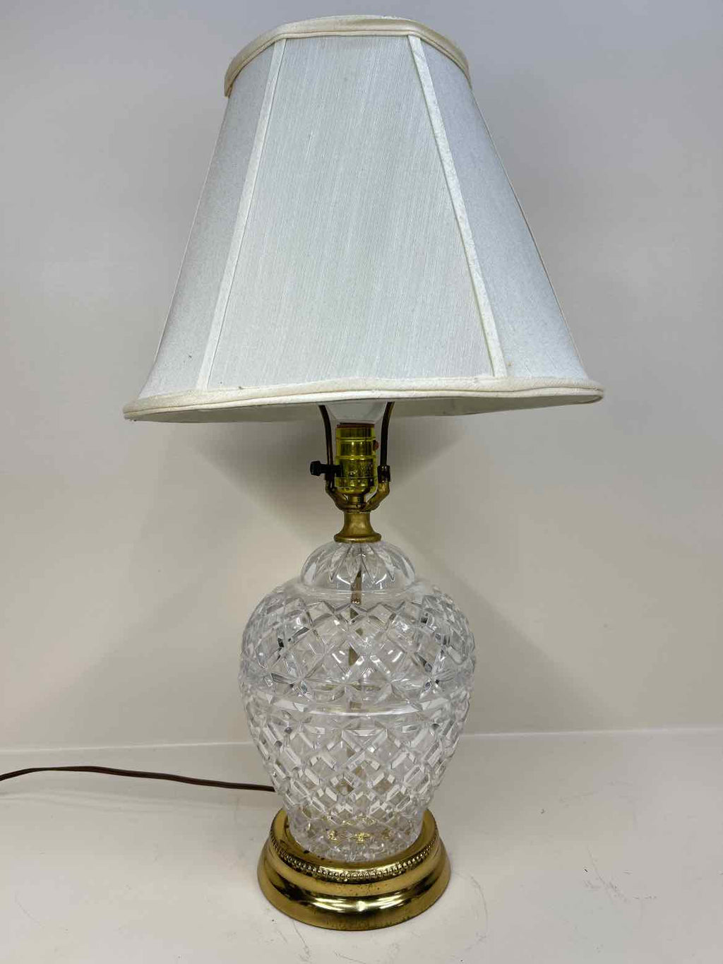 Crystal & Gold Table Lamp w/ Beige Shade - 24" Tall