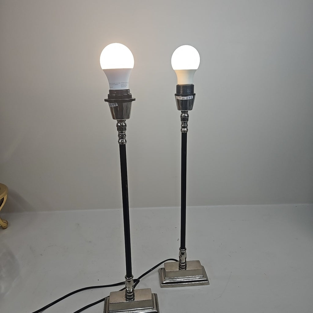 Set of 2 Black & Silver Table Lamps - 20" Tall