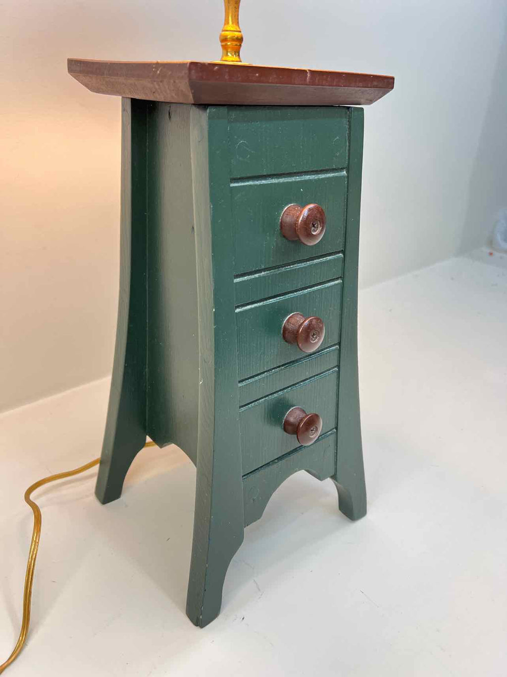 Green Wood Faux Drawer Lamp w/ White Shade - 25" Tall