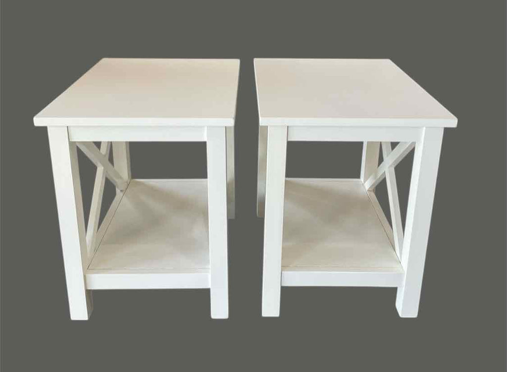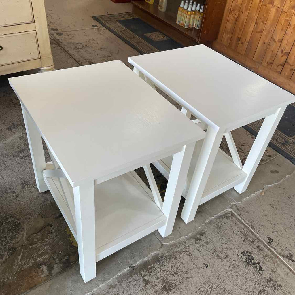 Brand New Set of 2 Rectangle White End Tables w/ Bottom Shelf - 20.5" Tall x 20" Wide x 16" Deep