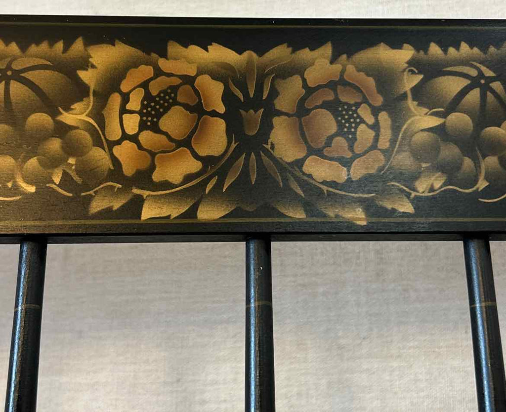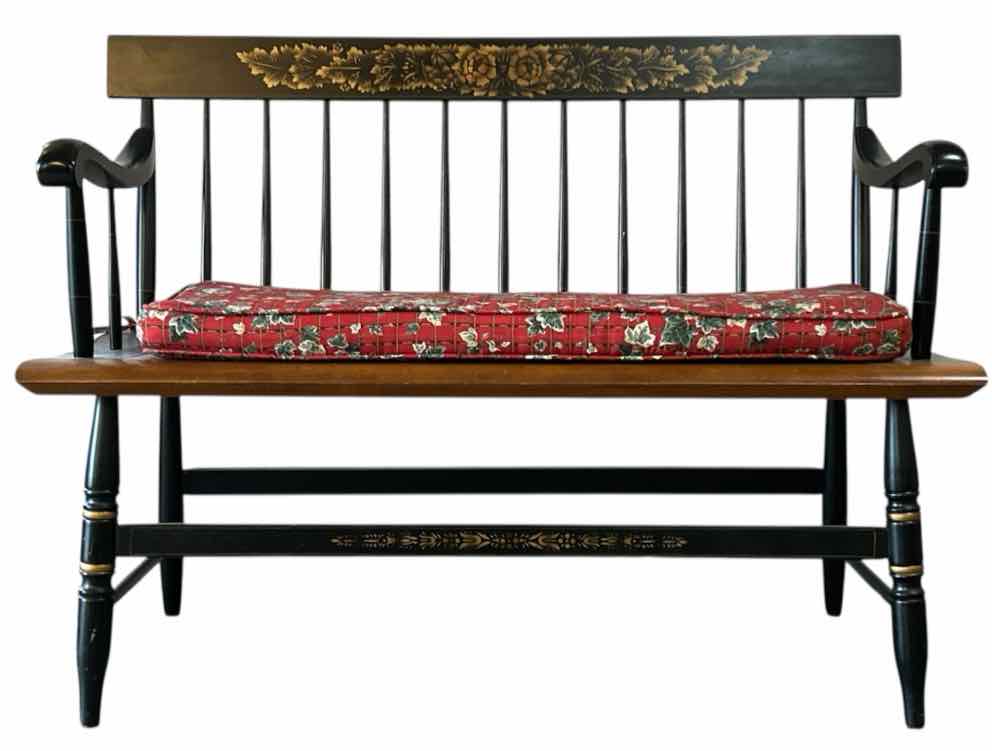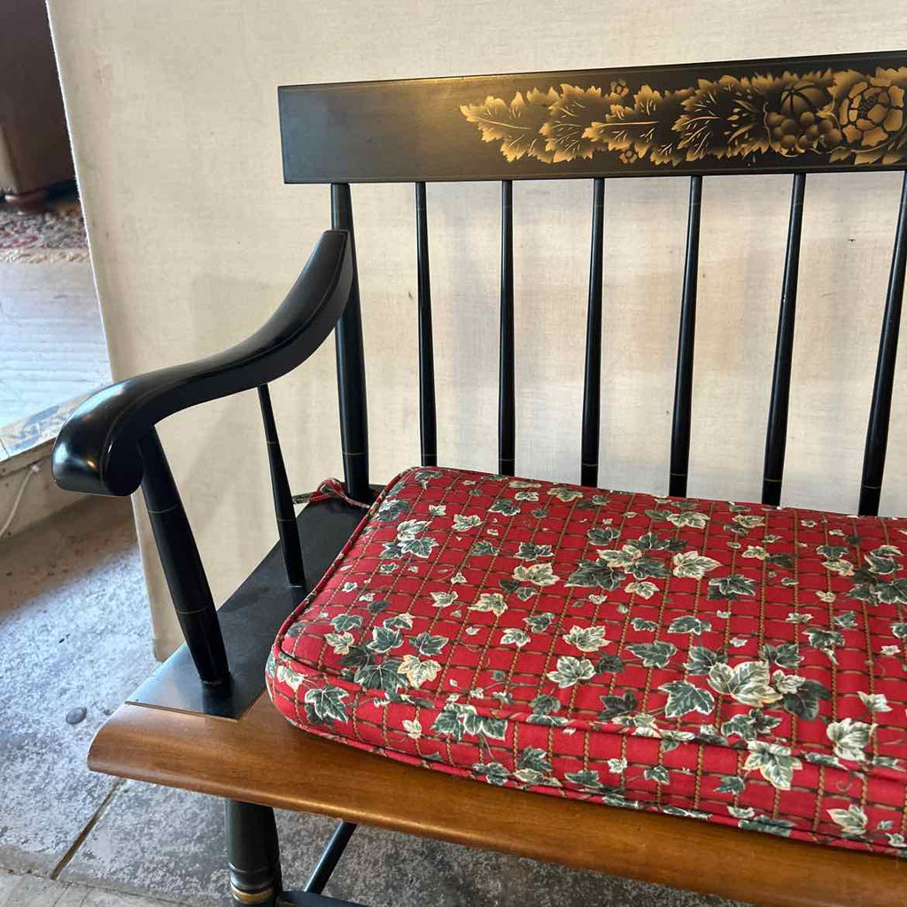 Solid Wood Settee w/ Gold Details & Red Floral Cushion - 33" Tall x 45" Wide x 17" Deep