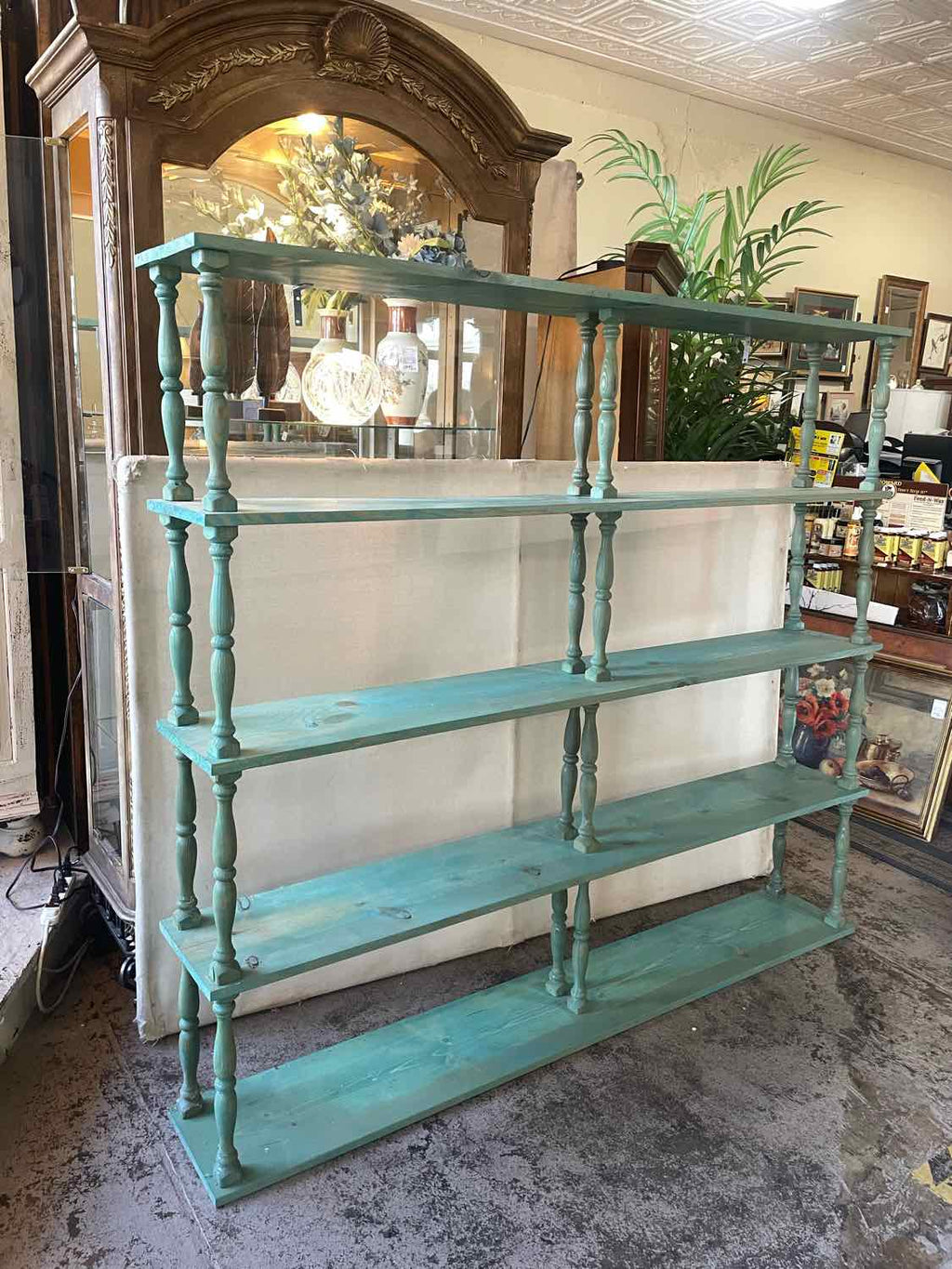 Teal Painted Open Bookshelf - 64.5" Tall x 72" Wide x 11.5" Deep