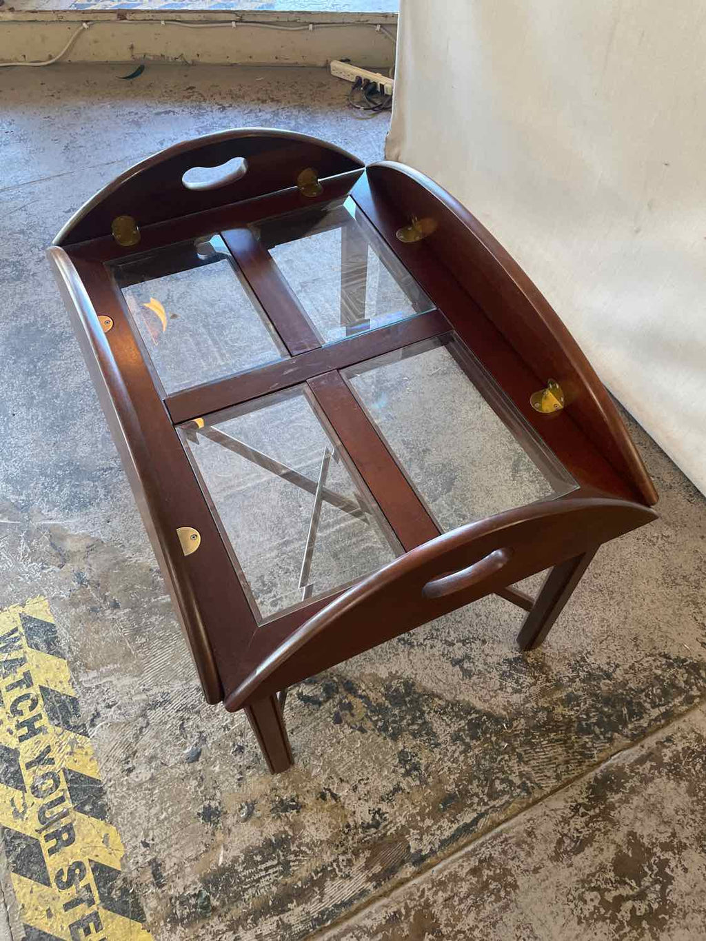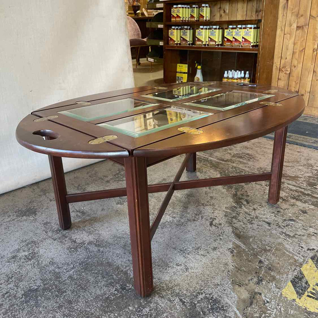 Wood & Beveled Glass Butler Style Coffee Table - 17"Tall x 40"Wide x 30.5"Deep