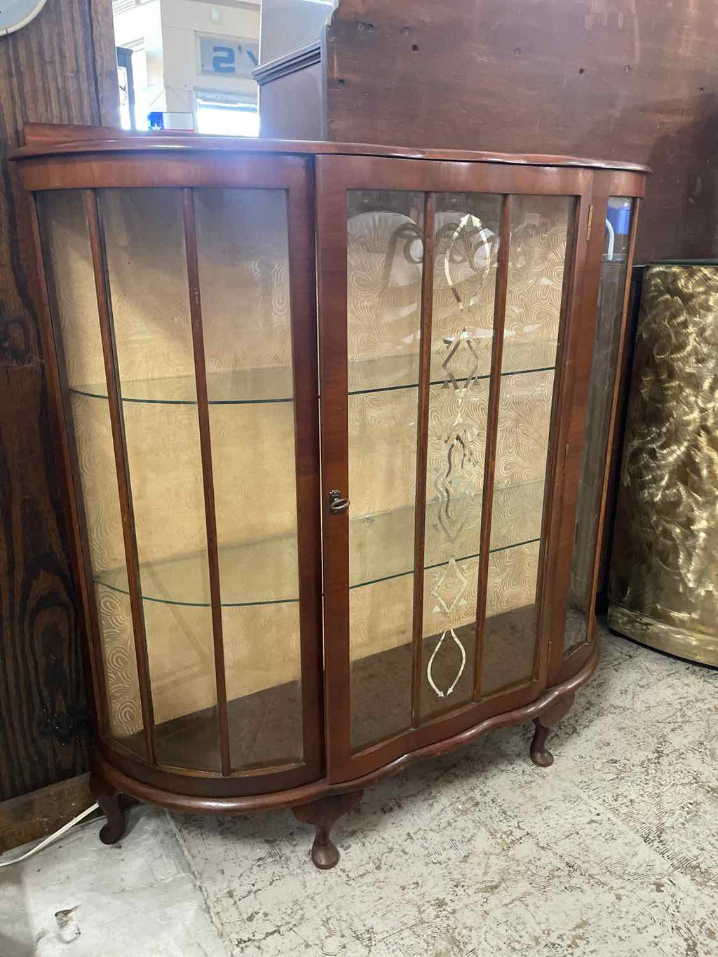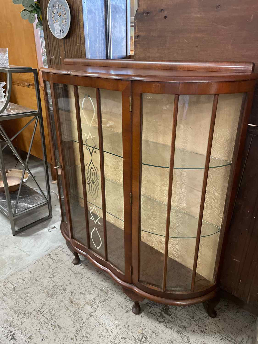 Low Antique Curio w/ 1 Glass Door & Interior Glass Shelves - 44.5" Tall x 42" Wide x 12.5" Deep