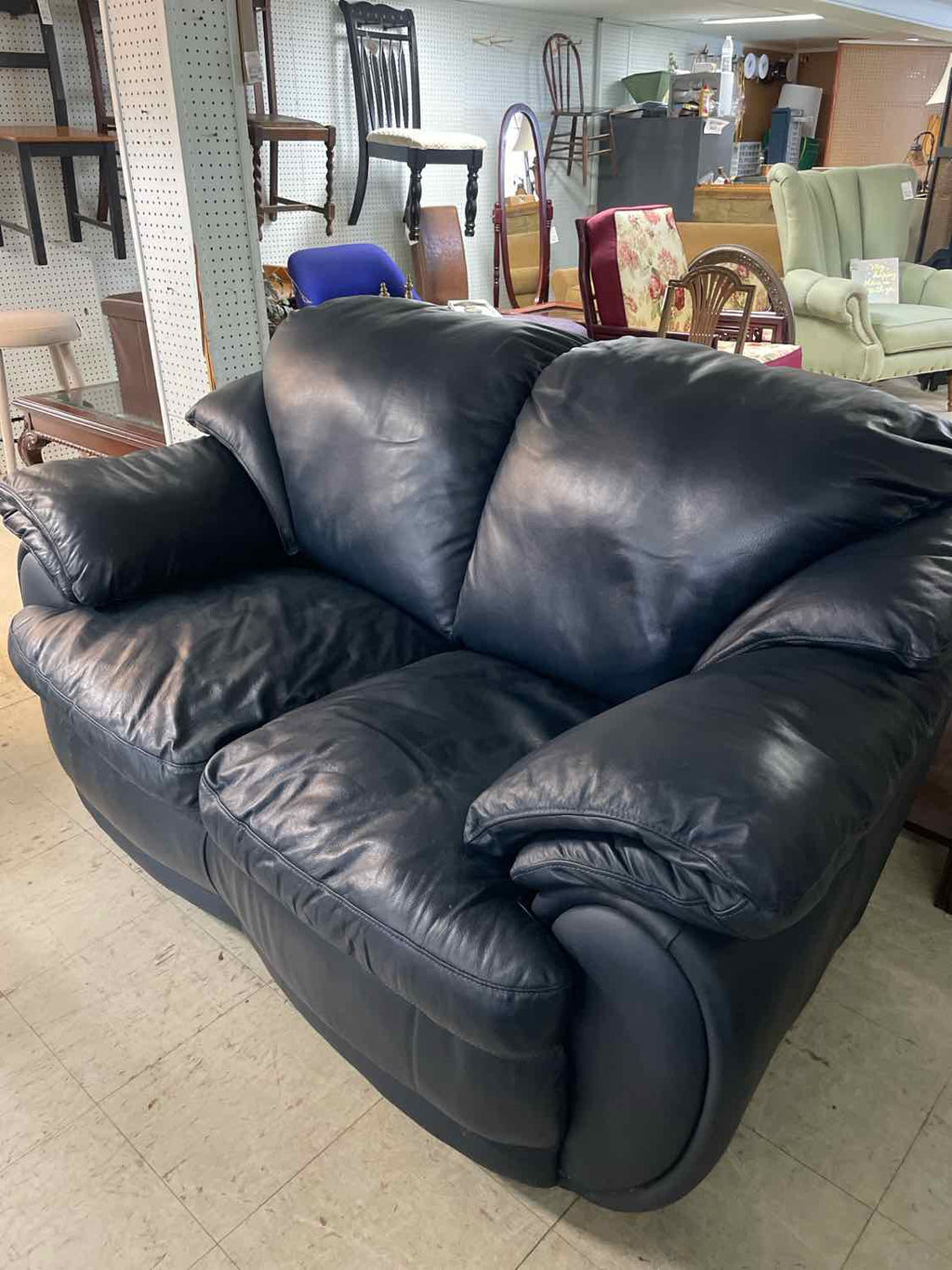 Blue Genuine Leather Overstuffed 3-Cushion Love Seat - 38" Tall x 67" Wide x 34" Deep