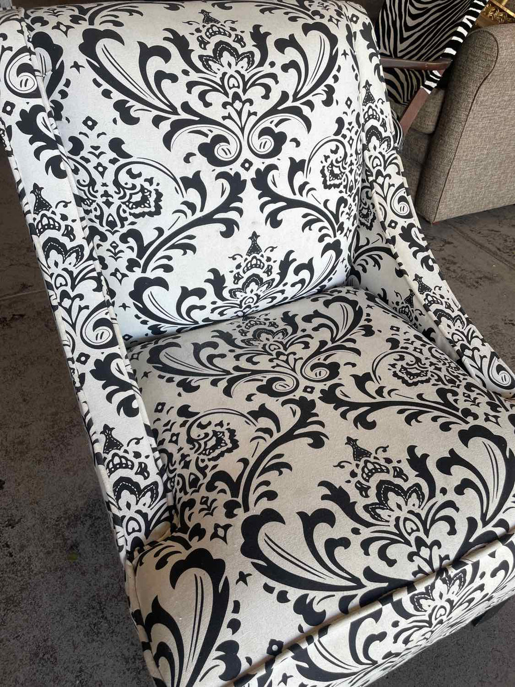 Black & White Damask Patterned Occasional Chair - 33" Tall x 23" Wide x 27" Deep