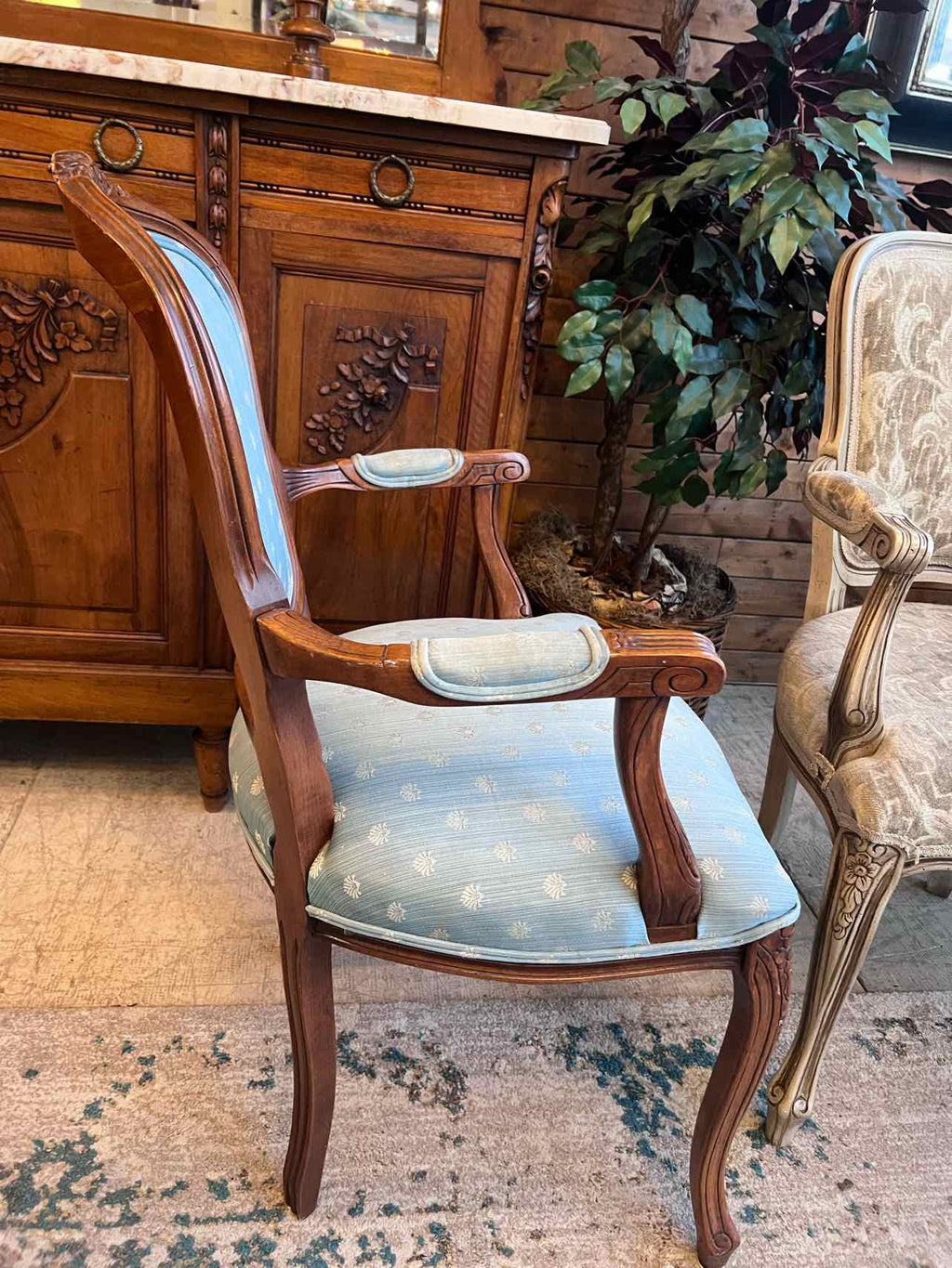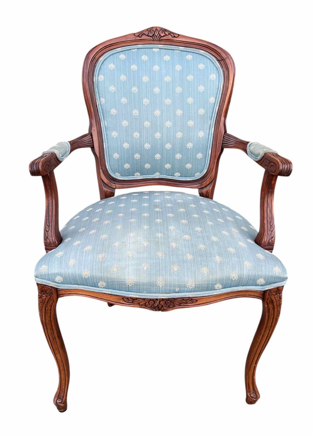 Wood Framed Armchair w/ Blue Upholstery - Priced for Condition - 36.5" Tall x 23" Wide x 19" Deep