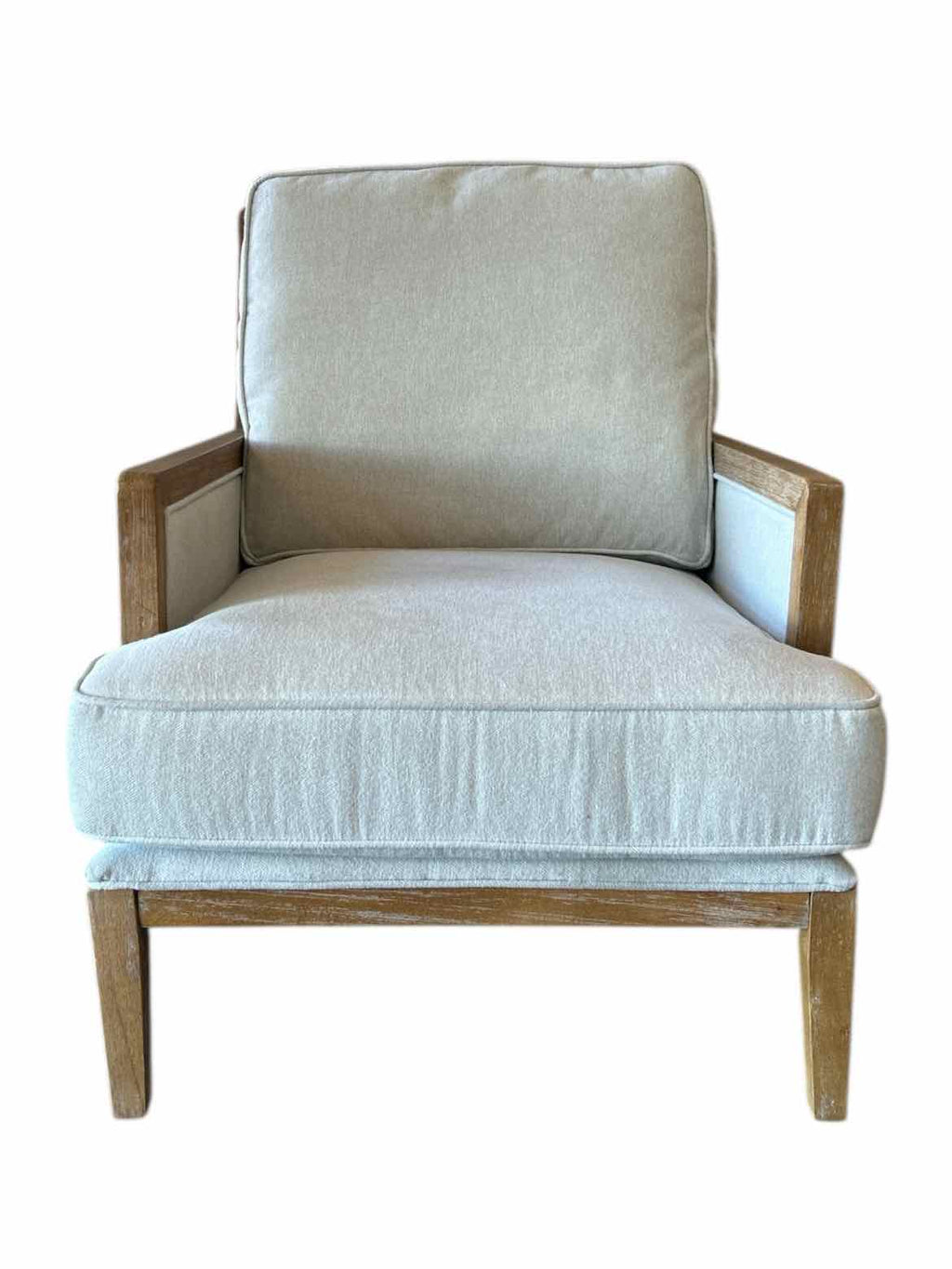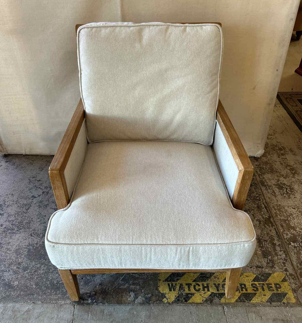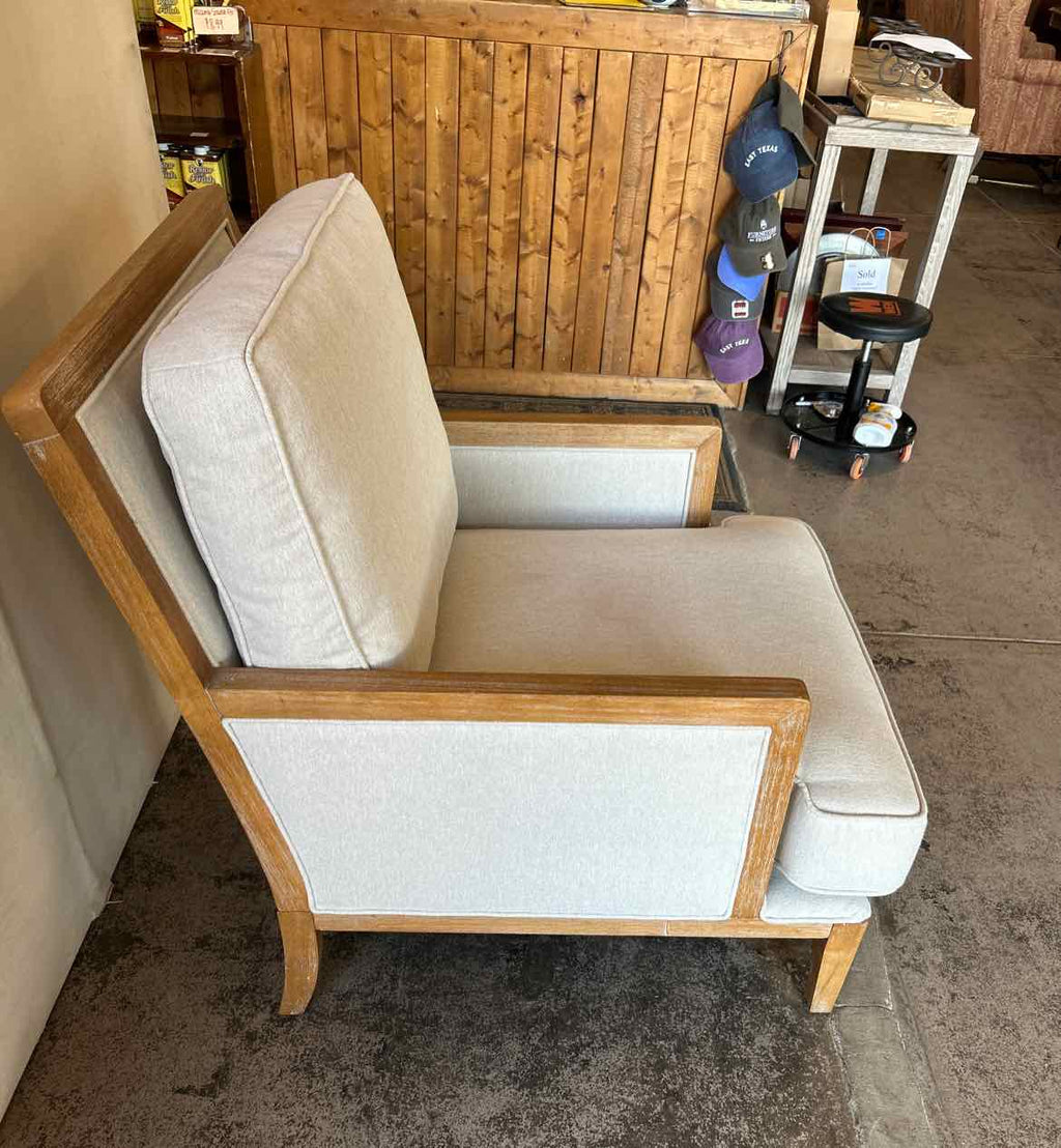 Wood Framed Occasional Chair w/ Grey Upholstery - 37.5" Tall x 29.5" Wide x 32" Deep