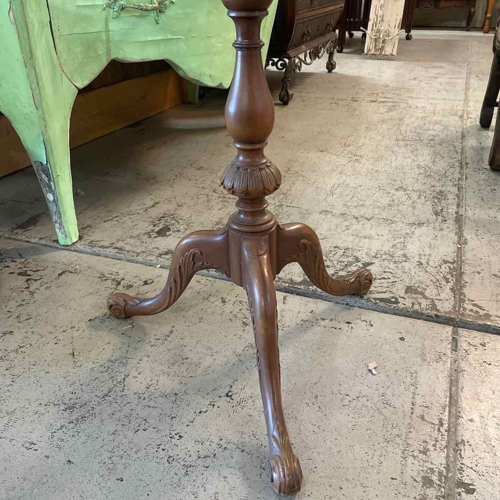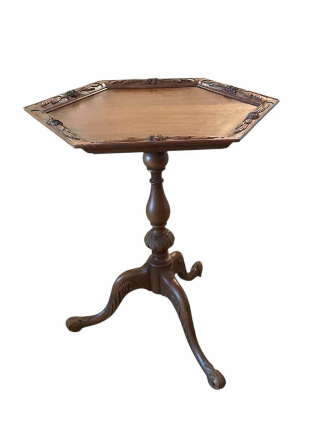 Pedestal Base Parlor Table - Hexagon w/ Carved Details - 27" Tall x 23.5" Wide