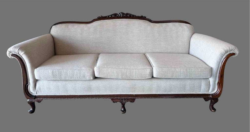 Antique 3-Cushion Sofa w/ Custom Upholstery - 34" Tall x 77" Wide x 27" Deep