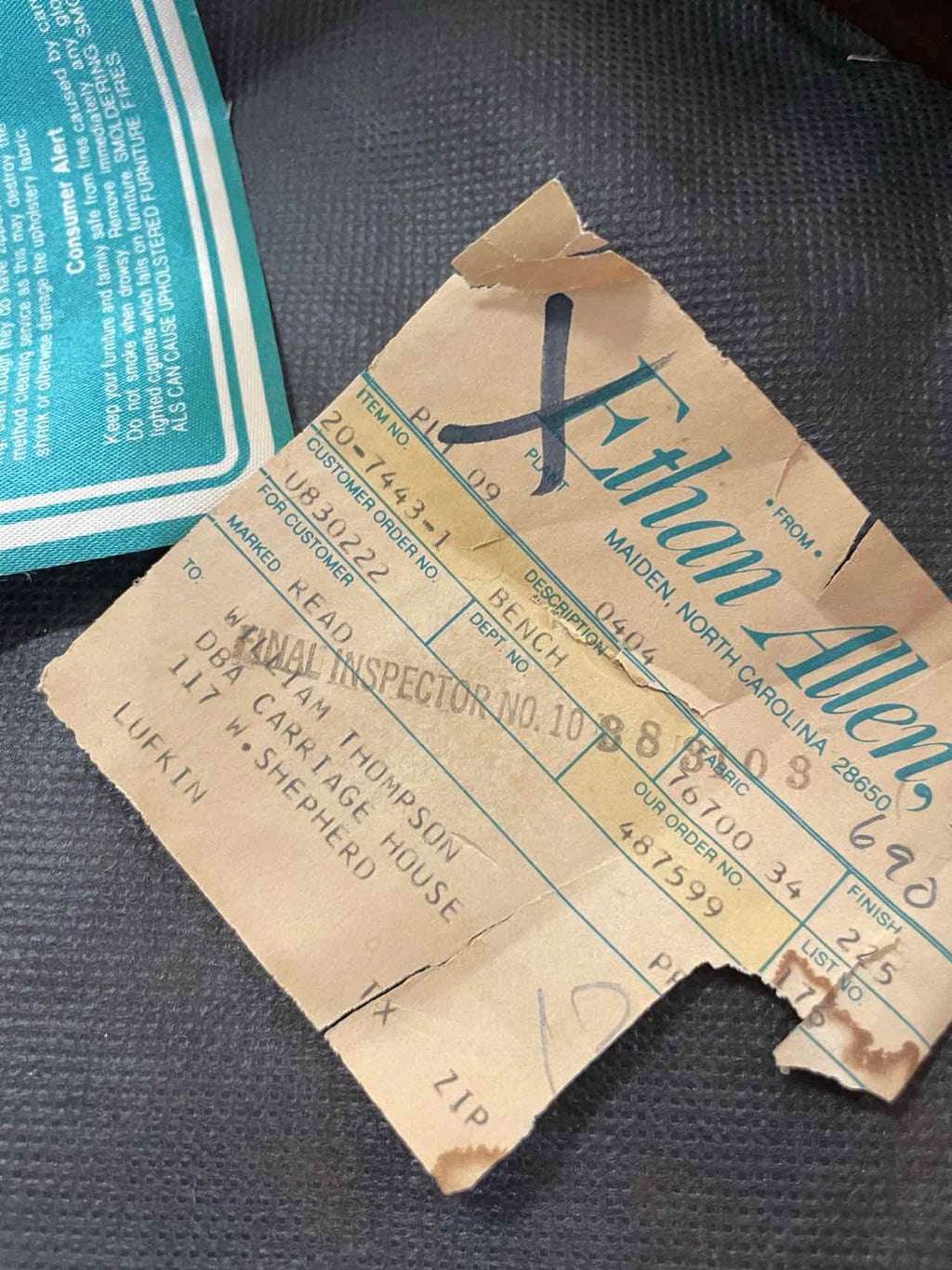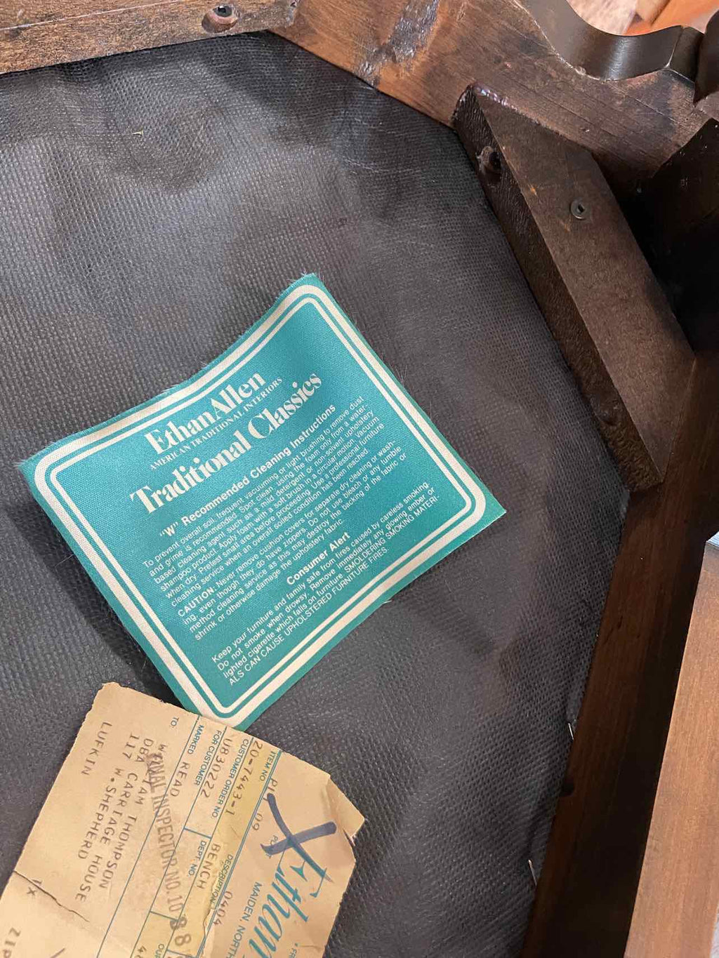 Ethan Allen 3-Piece Set - Queen Anne Style Sofa Table w/ Dark Finish & 2 Stools w/ Pink Upholstery - 27" Tall x 60" Wide x 16" Deep