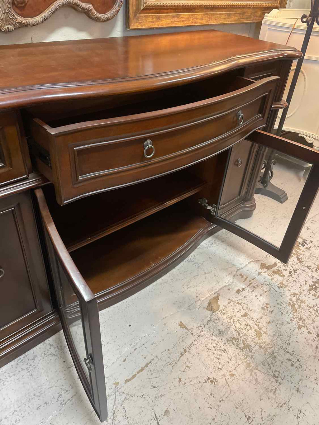 Dark Brown TV Stand W/ 2 Glass Doors, 2 Wood Doors & 3 Drawers - 34" Tall x 62.5" Wide x 20.5" Deep