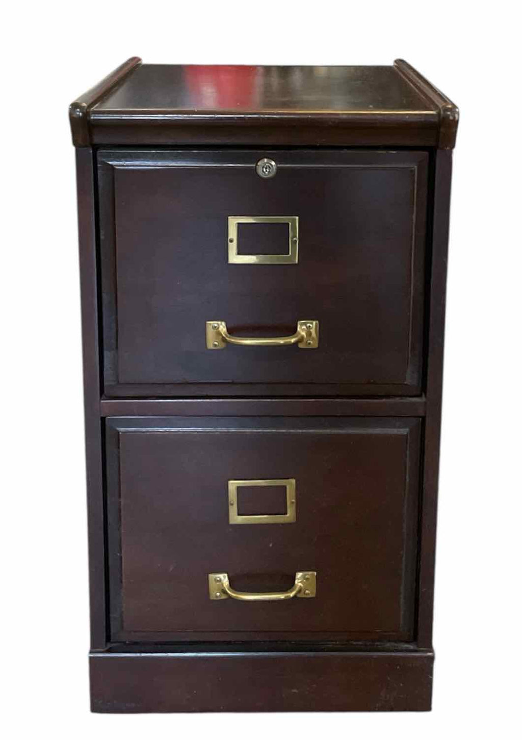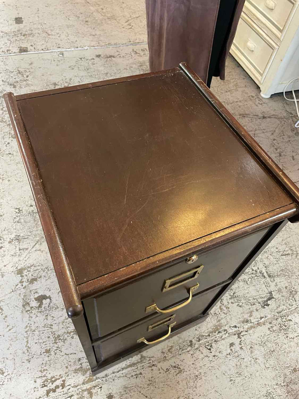 2-Drawer Solid Wood Filing Cabinet w/ Dark Finish - 28" Tall x 15.5" Wide x 17" Deep