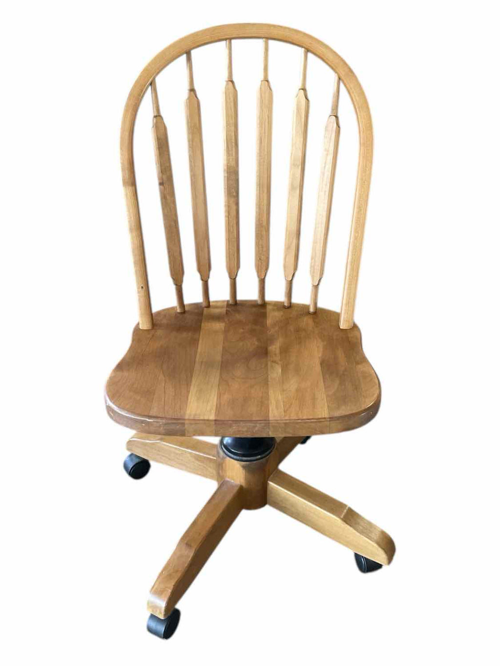 Solid Oak Rolling Office Chair - 39" Tall x 18" Wide x 17.5" Deep