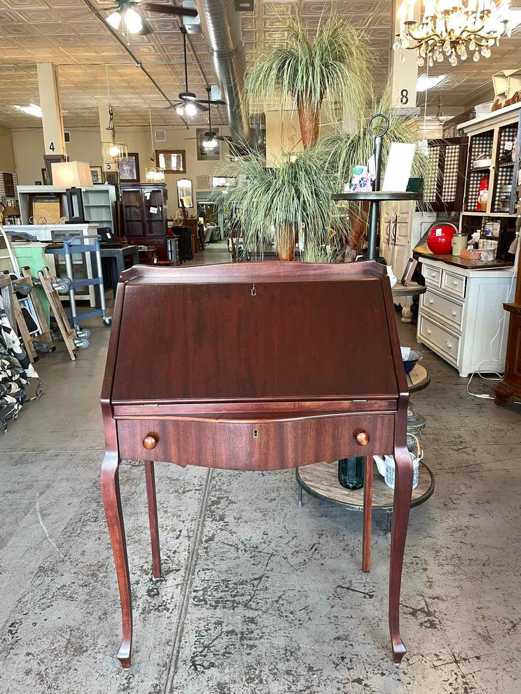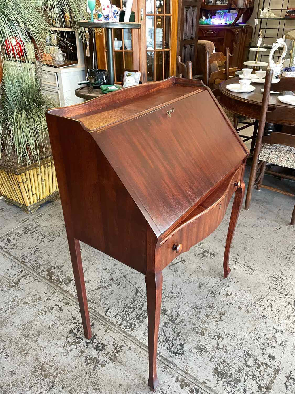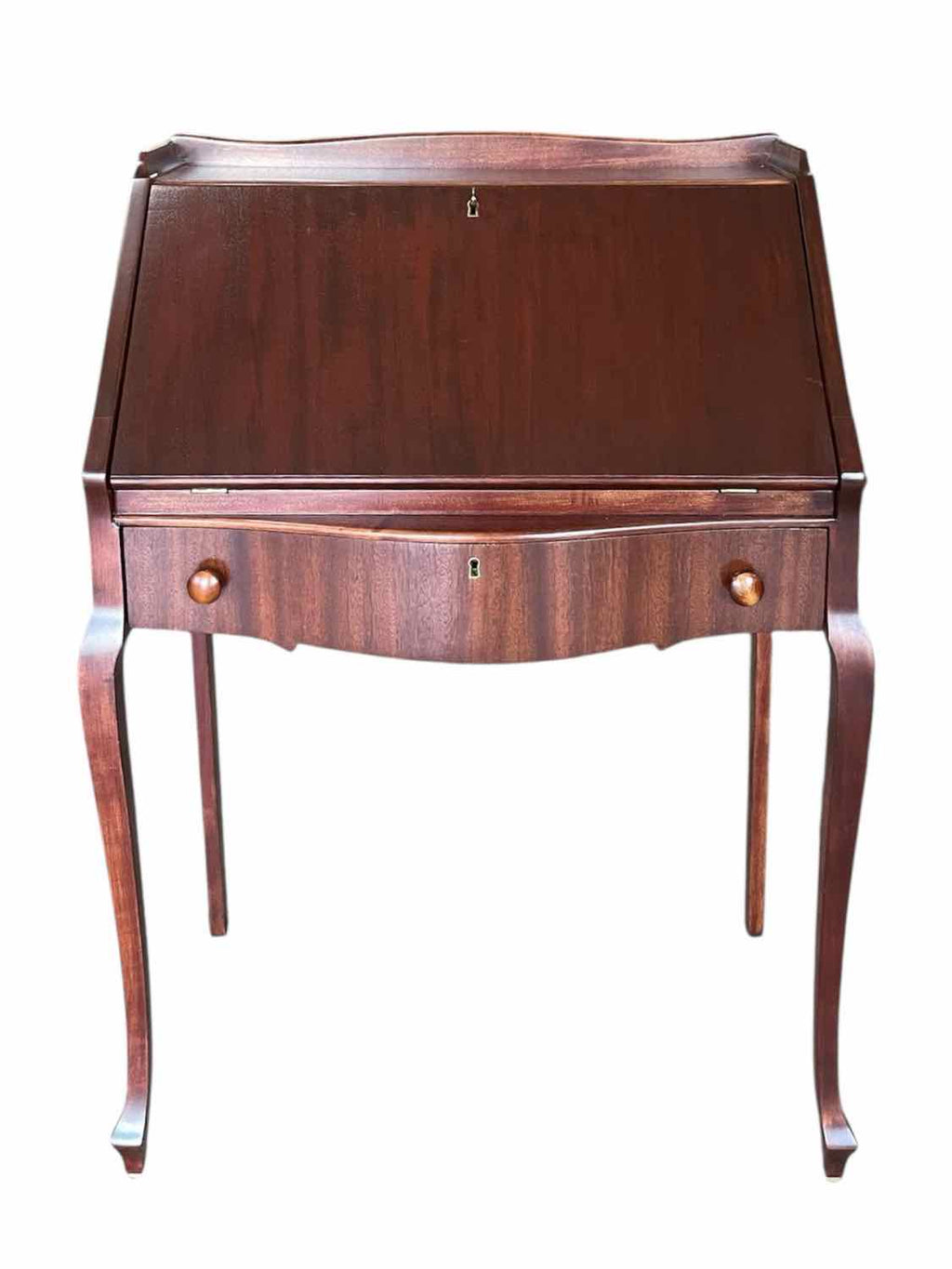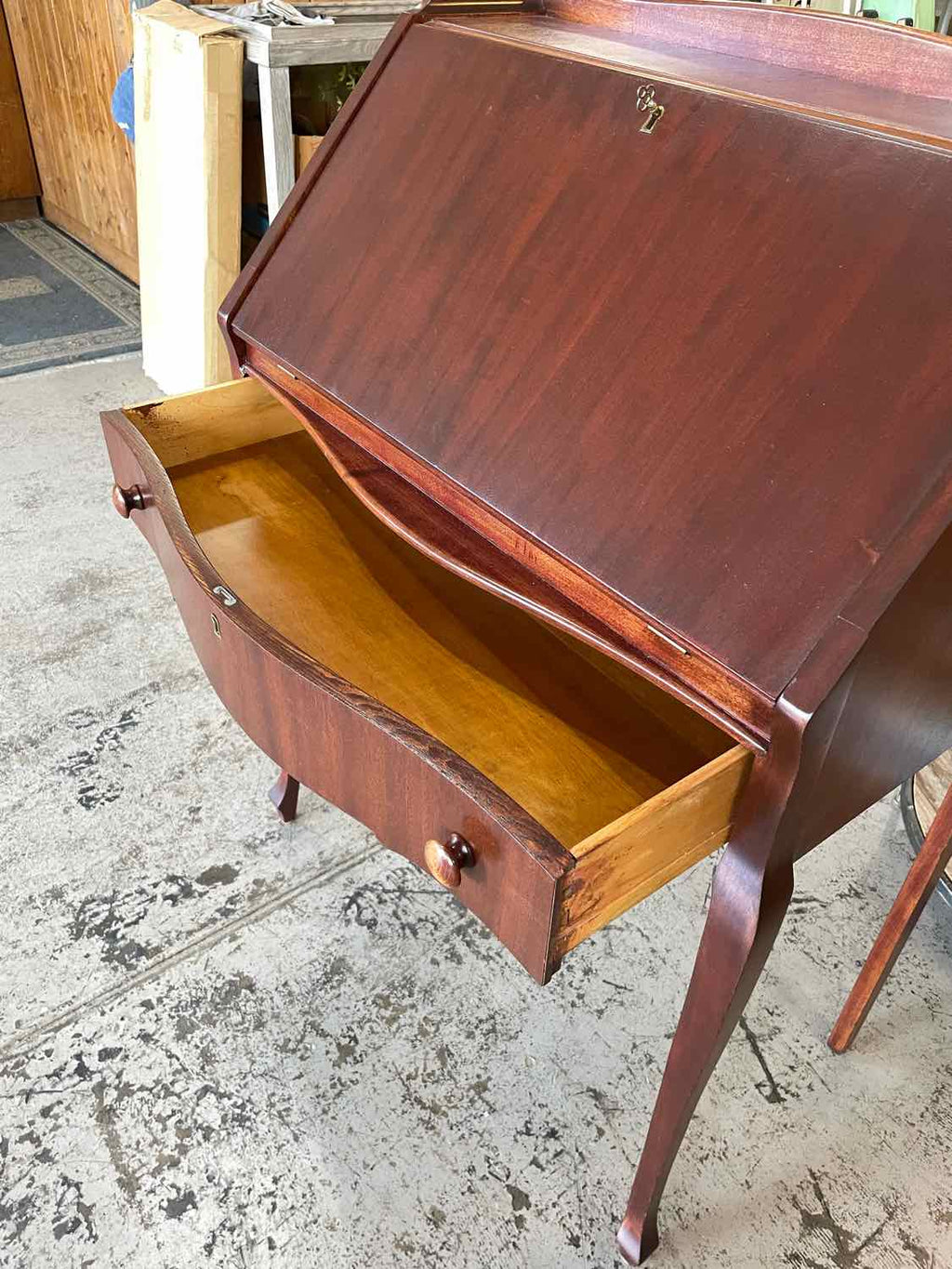 Petite Drop Front Secretary w/ 2 Drawers & Mahogany Finish - 40.5" Tall x 28" Wide x 16" Deep