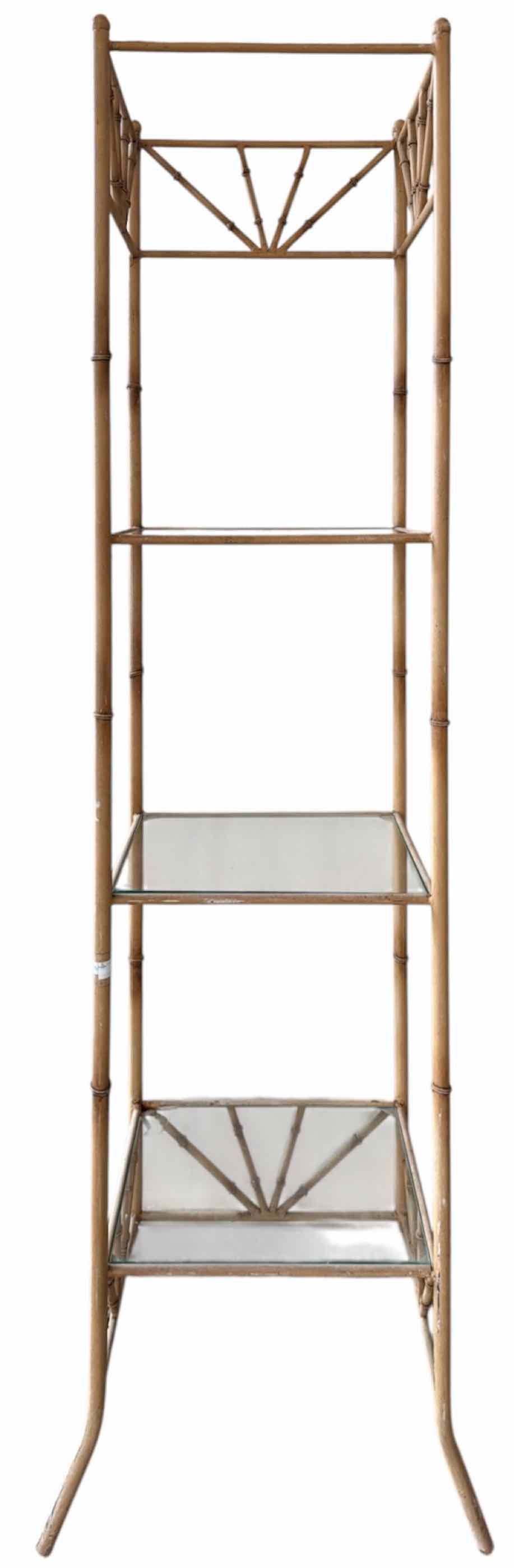 Vintage Metal Patio Shelf w/ 3 Glass Shelves - 68" Tall x 17.5" Wide x 15" Deep